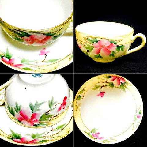 美品!里帰りオールドノリタケ 金盛上げ カップ&ソーサー4客