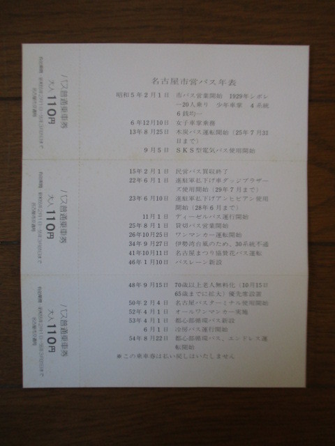 ◇市営バス 50周年 乗車券 名古屋市交通局 3枚セット タウト入り 昭和55年