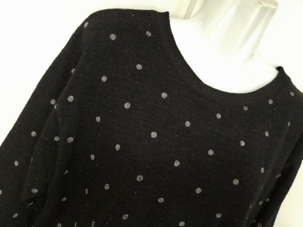 ■ Dispark ■ ディスパーク ニット セーター トップス ドット 七分袖 黒