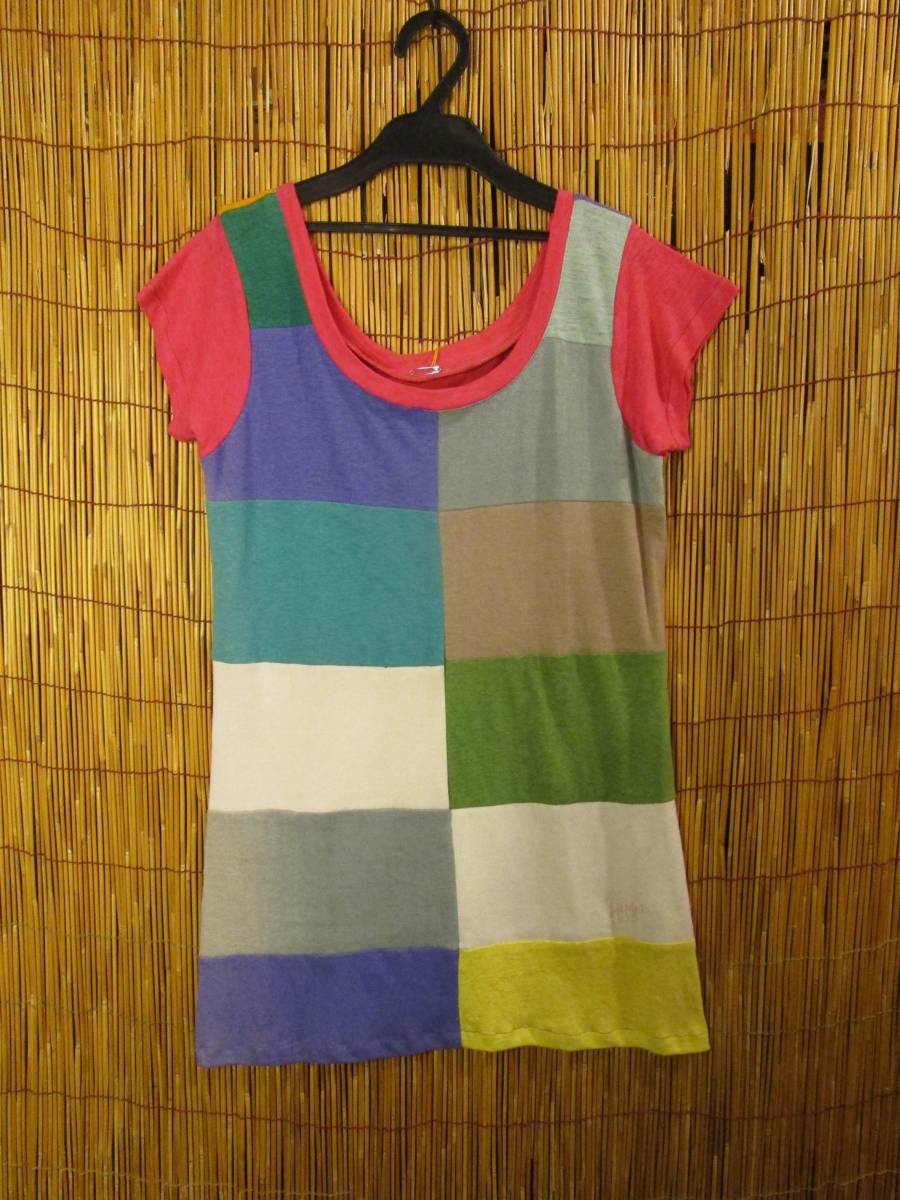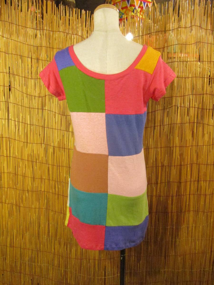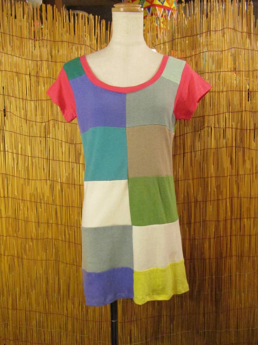 ①新品*ヘンプコットン素材*ブロックチェック*切り替えカラー*小さめ*ミニワンピース