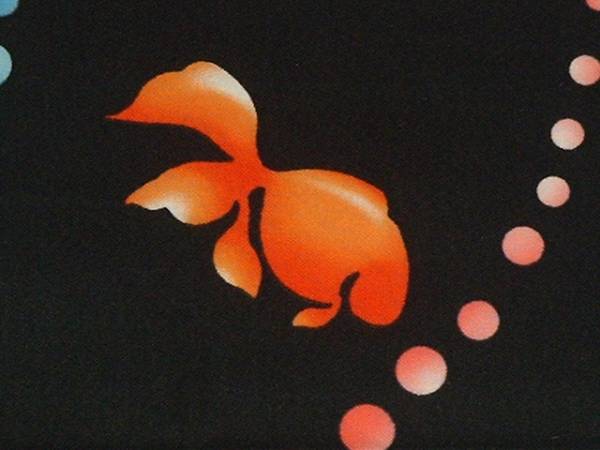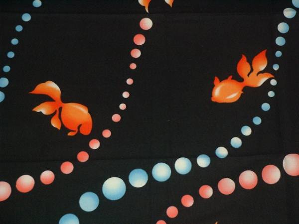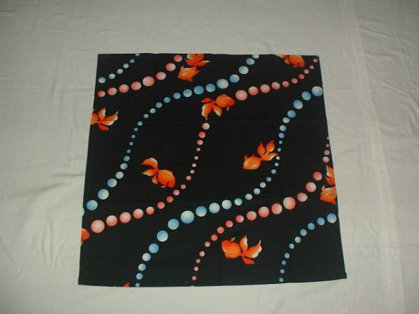 手作り、綿100%、57cmの風呂敷、流水と金魚、黒