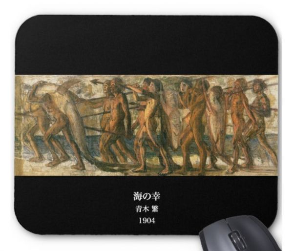 日本の明治期の洋画家 青木繁( 明治15年7月13日 - 明治44年3月25日)の有名な絵 海の幸 で作った 最高級マウスパッド です。 青木繁が大好きな、あなたのために作りました(日本国内の工場で美しく丁寧に焼き付け加工しています)。