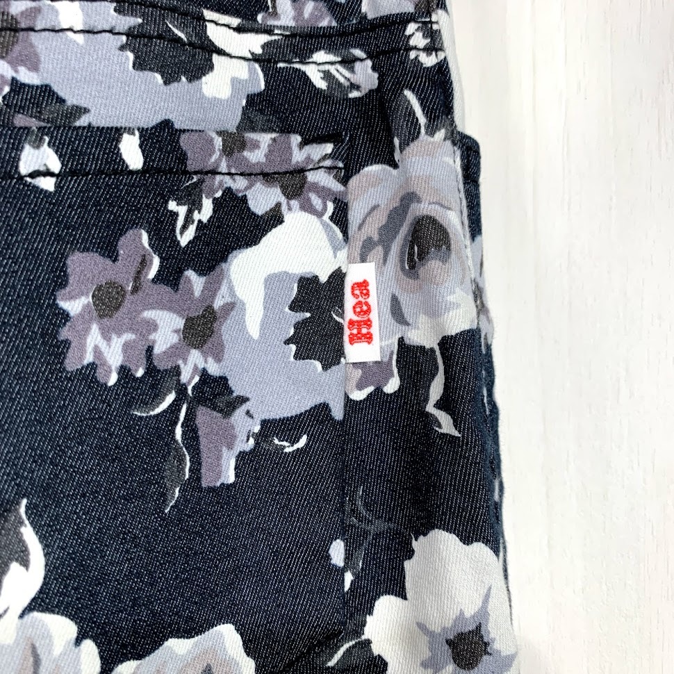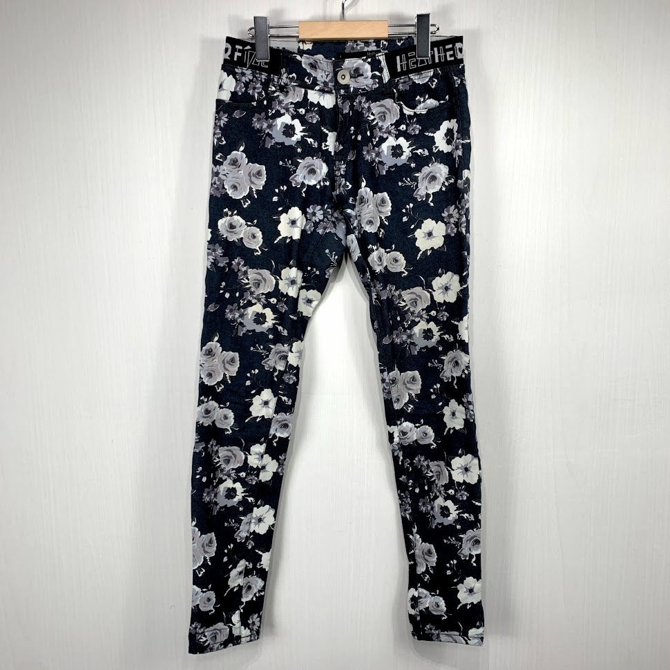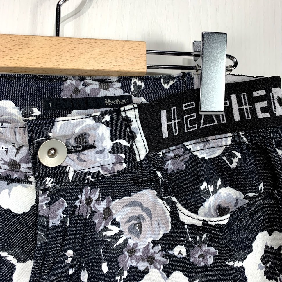 Heather ヘザー 花柄 スキニー パンツ Mサイズ ブラック 黒 総柄 ストレッチ デニム調