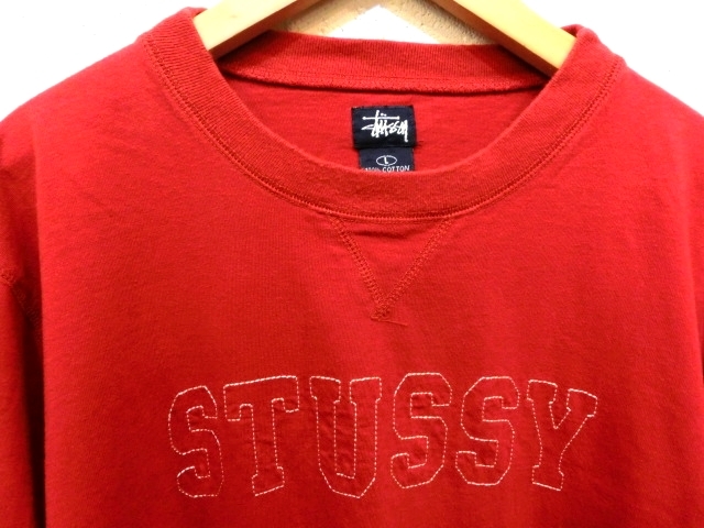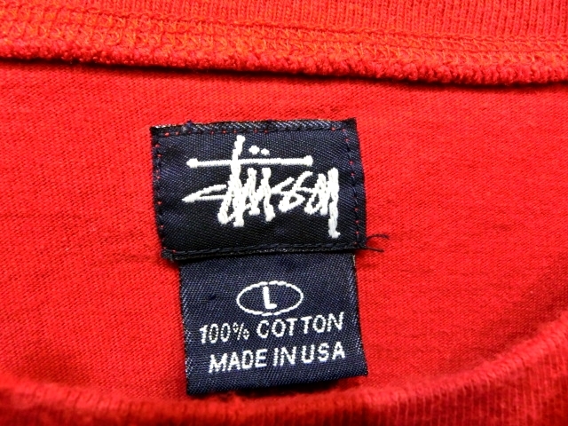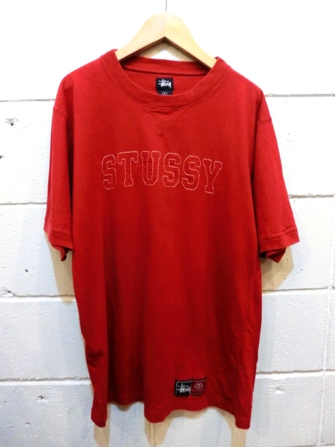■商品      :90's STUSSY オールドステューシー ロゴ刺繍 Tシャツ ベースボールTシャツ sizeL 紺タグ レッド USA製 91H0404