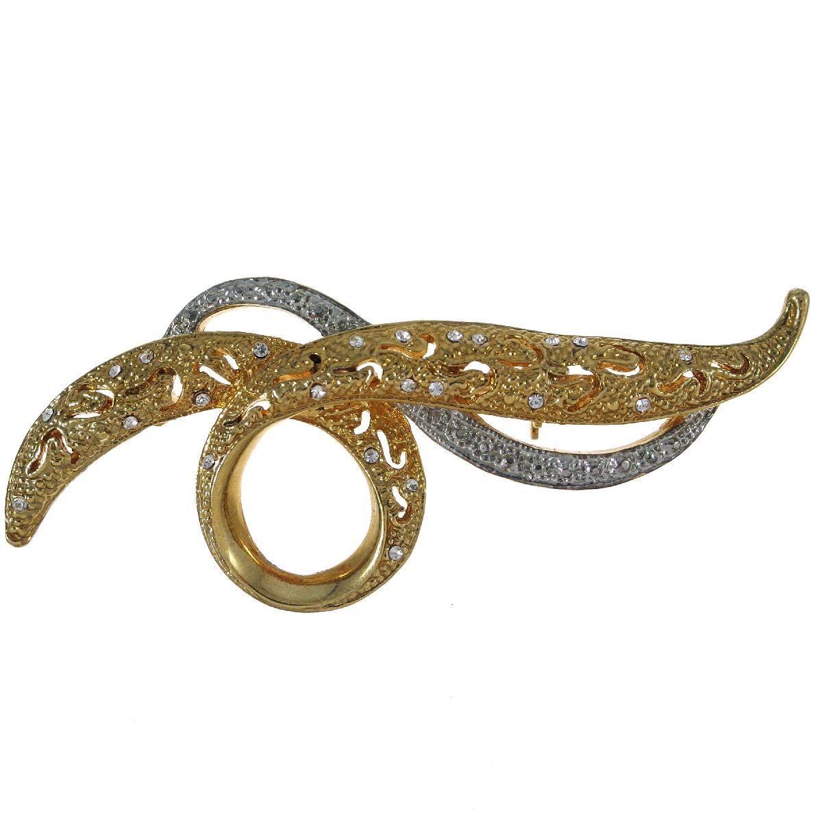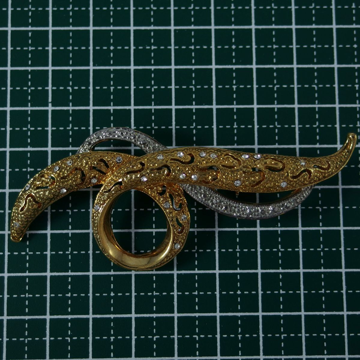 A4008◆【AVON】 ◆ ゴールド & シルバーのツートーン * 金銀 ◆ ラインストーン ◆ヴィンテージブローチ ◆