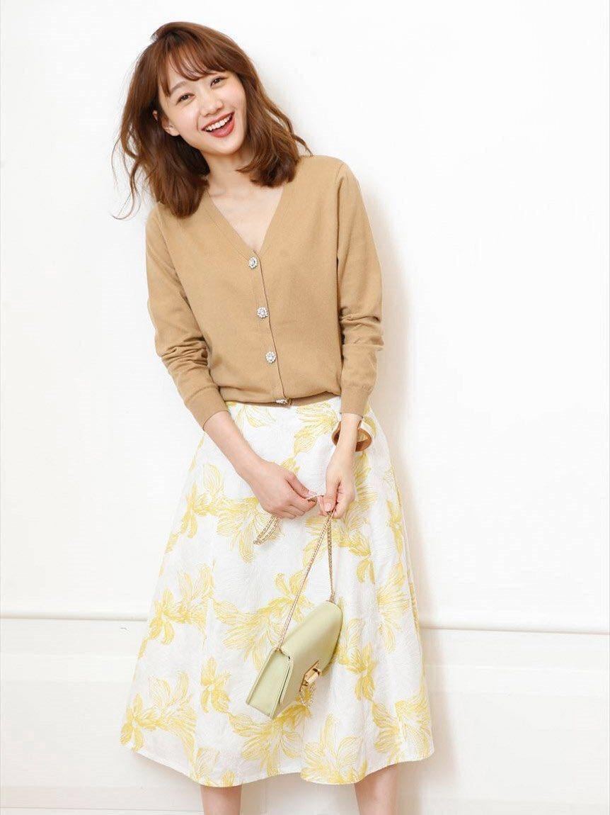フラワー柄の刺繍が、ロマンティックなムードを演出するスカート。フレアシルエットにレディライクな印象を受けるアイテムです。シーンを選ばない上品な丈感も魅力のひとつです。