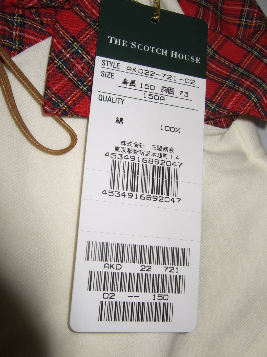 THE SCOTCH HOUSE ザ スコッチハウス チェック キッズ 子供服 150A 長袖 カットソー 三陽商会 未使用