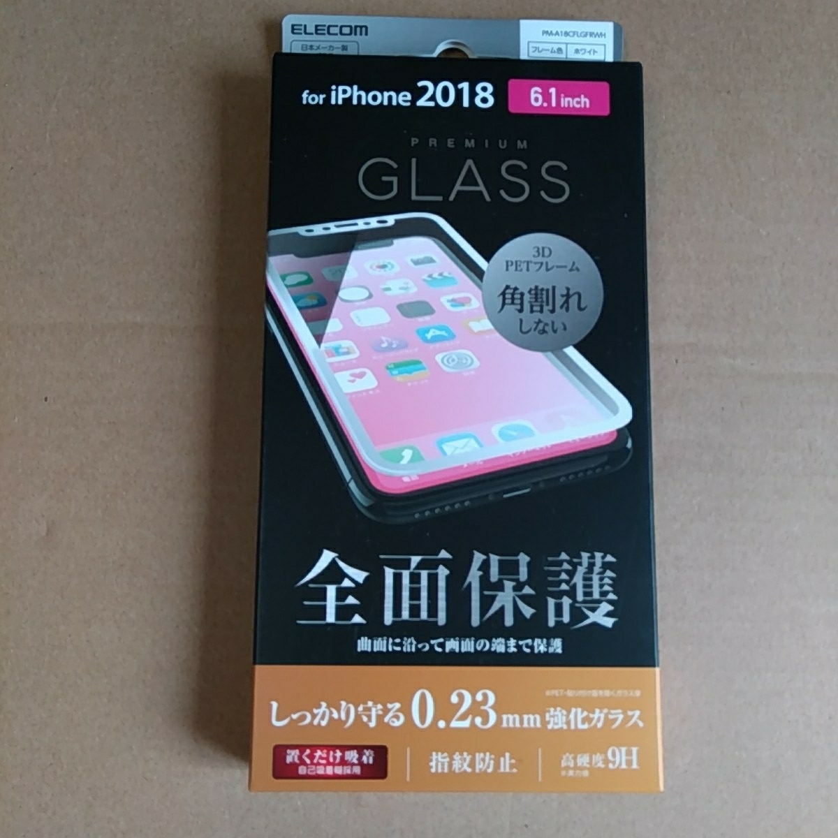 ◎ELECOM iPhoneXRフルカバーガラスフィルムPETフレーム付 ホワイト PM-A18CFLGFRWH
