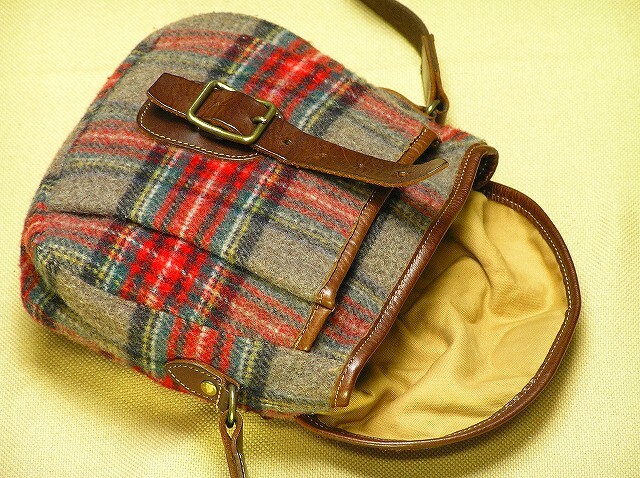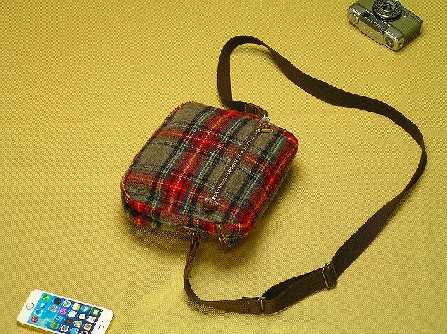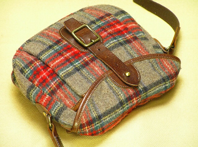 | 信頼の日本製 Made in Japan♪ウールWoolツイードTweed+本革+真鍮鍛造金具メンズ斜め掛けショルダーバック■2120 | |