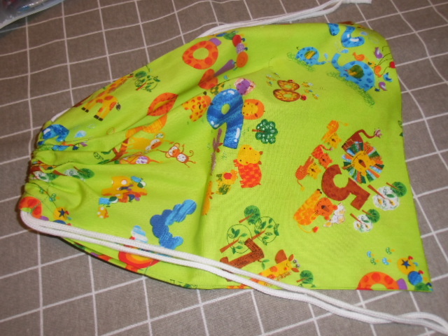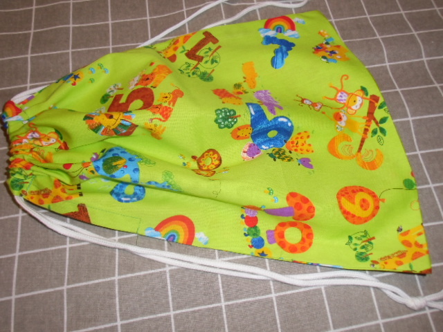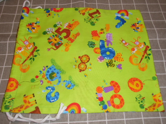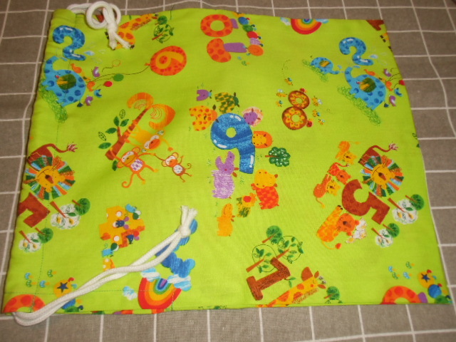 大17  巾着袋 小物入れ 体操服入れ  ハンドメイド  黄緑アニマル&数字