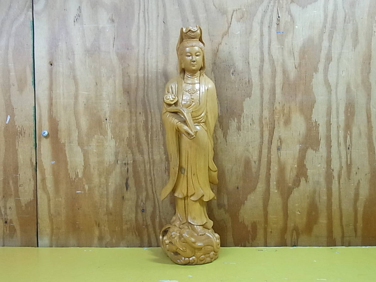 Aa/037☆無銘 木彫り 仏像 観音菩薩立像☆中古品 | |