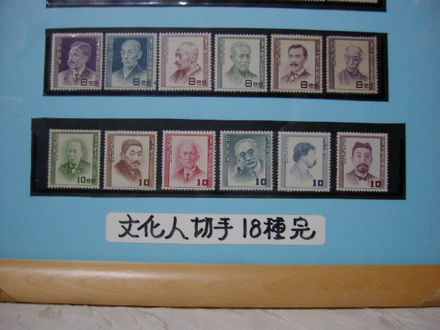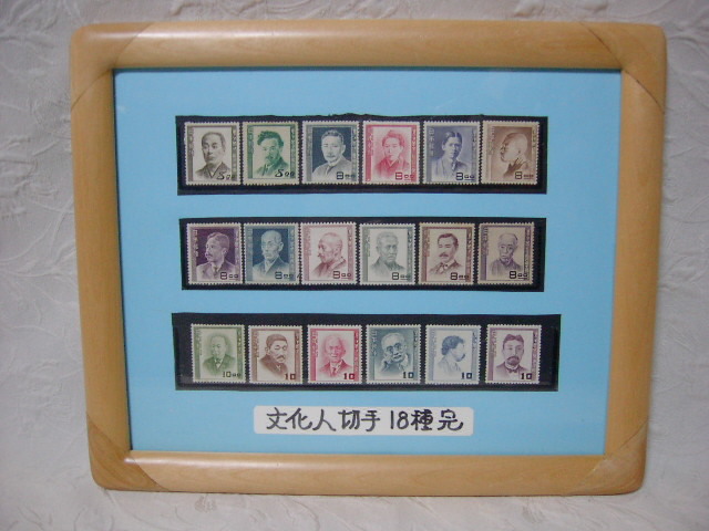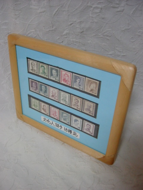 額入り・インテリア アート !! 状態良好 未使用品 「文化人切手 18種完」 / 特別出品 ( 11 )