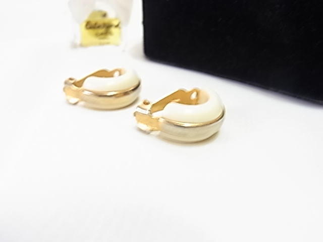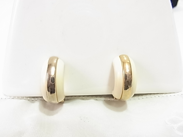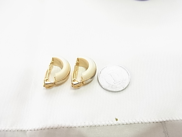 アイボリーホワイトとゴールドカラーのコンビデザイン ニュートラ調 イヤリング♪
