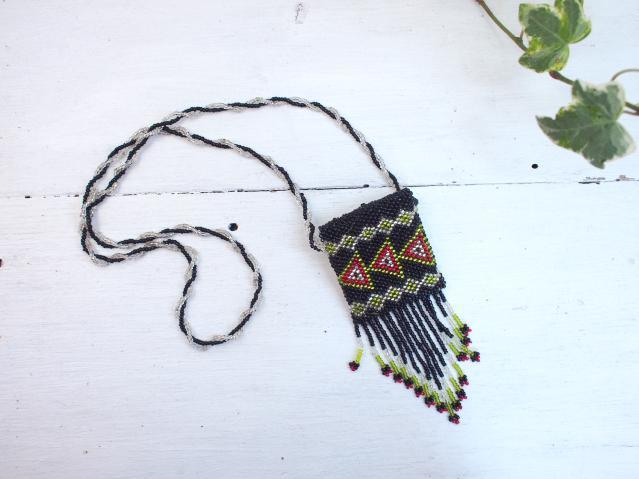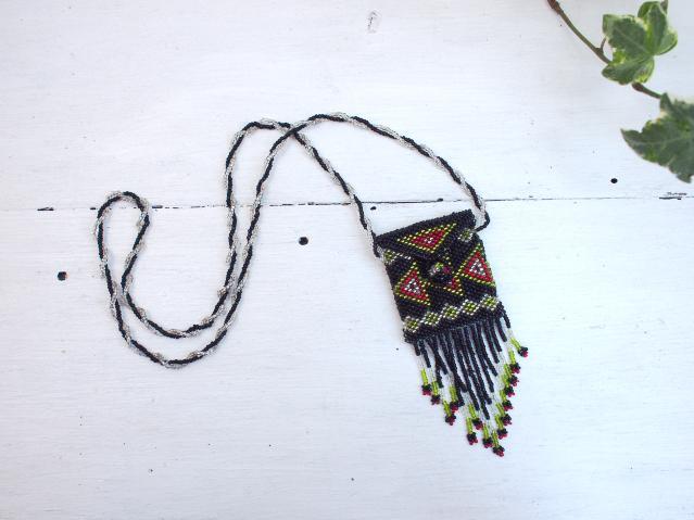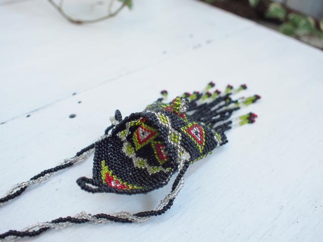バリ島面白雑貨*ビーズのポーチネックレス*クロ:D☆お守り・匂い袋などに