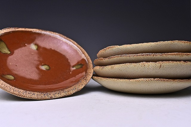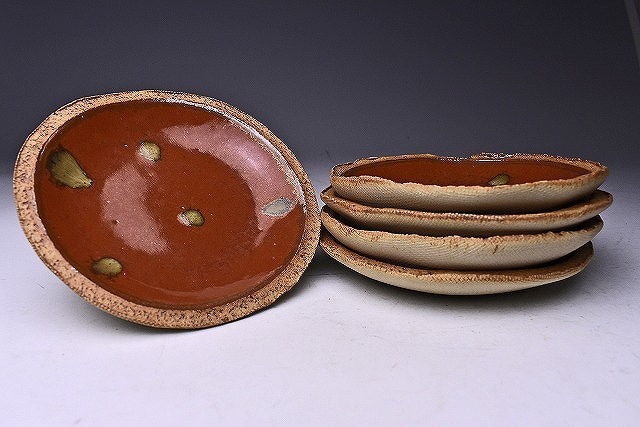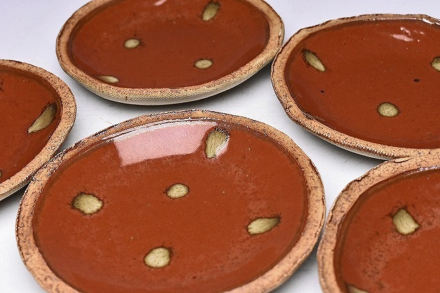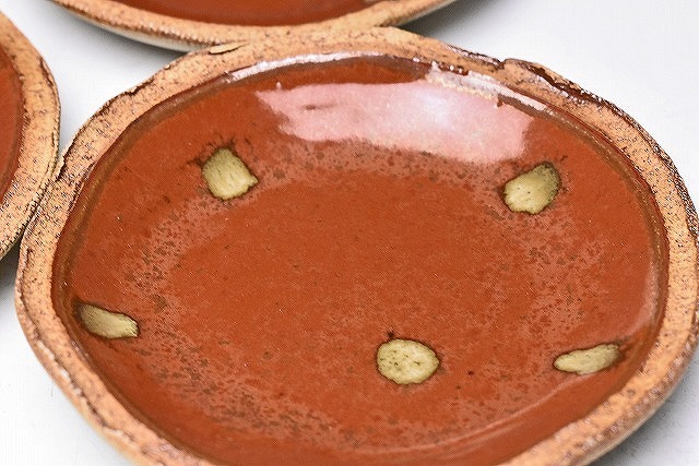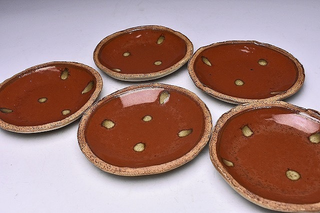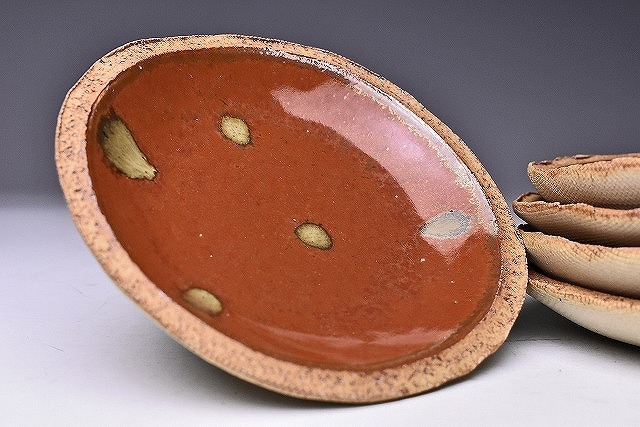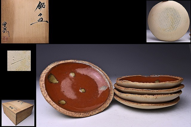久田重義 ★ 朱天目銘々皿5客揃え ★ 共箱 ★ 菓子皿 ★ 柿釉 ★ 曜変天目研究 ★ 物故巨匠 ★