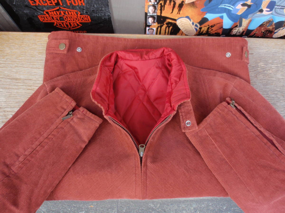 中古品ですが、ほぼ使って無かったので目立った汚れや傷は無く状態は良いです。ティーエムティ「ビッグホリデー」のえんじ色なコーデュロイ地を使ったライダースジャケットになるかと思います。サイズはM表記で実寸では平置きで肩幅44センチ、身幅50センチ、着丈64センチ、袖丈63センチ位です。カムトゥルー 正規品。