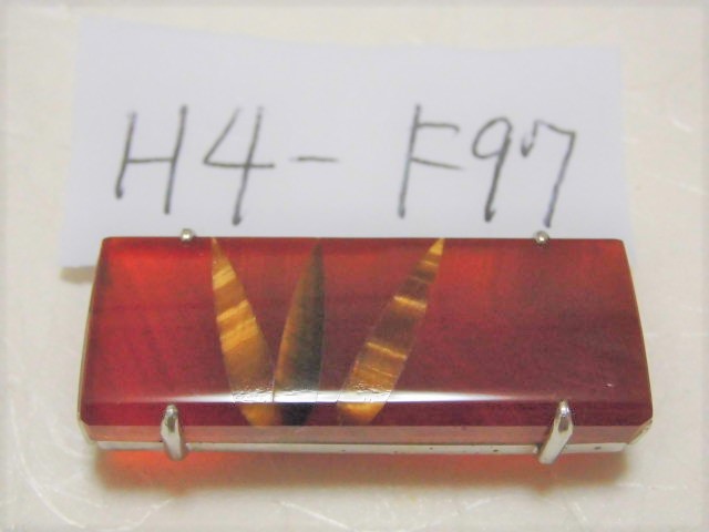 レンガ色の石に笹柄の虎目石をはめ込んだ帯留/フォーマルに/H4-F97