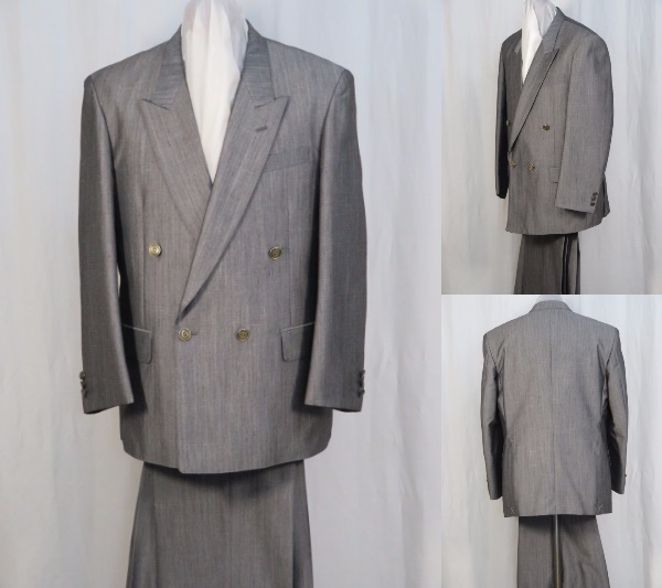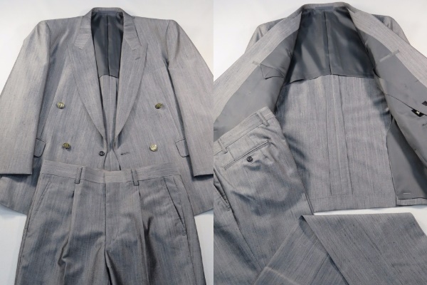 ★☆ A4-78 ダブル4B×1ピーク衿スーツ 新品 春夏秋 銀鼠系 日本製 ☆★