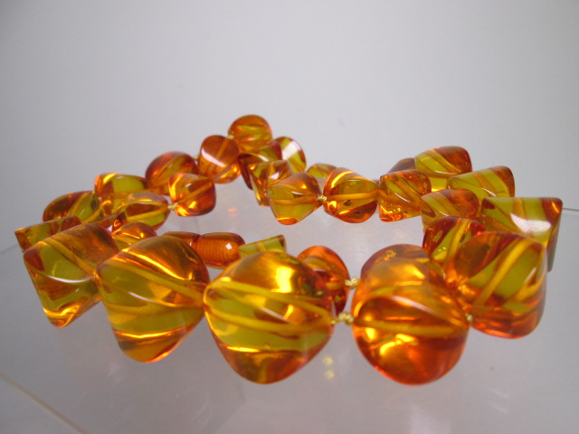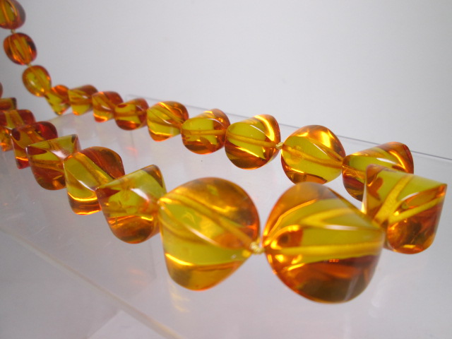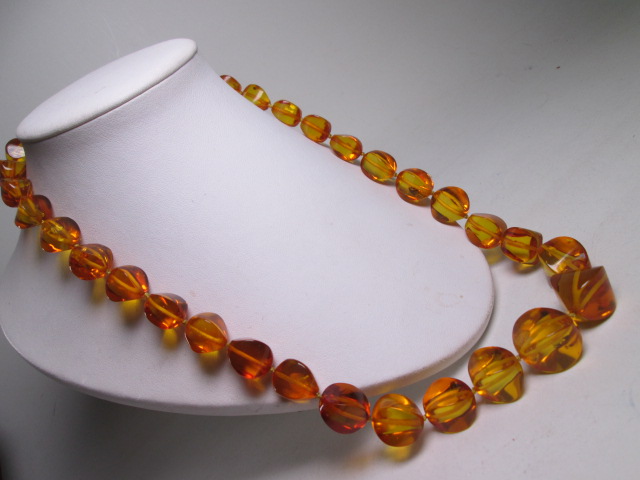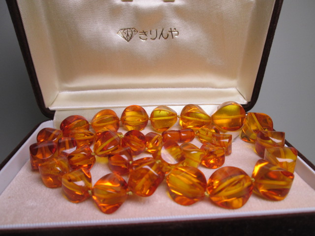 ☆上質 天然琥珀玉 2,1cm カットの綺麗なロングネックレス ケース付