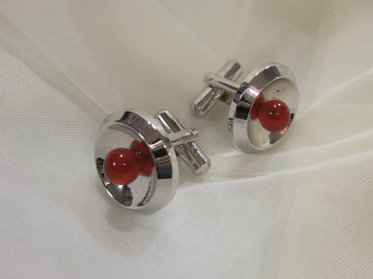 キレイ♪赤瑪瑙レッドアゲートルース入♪シンプル系レトロクラシックなビンテージカラーカフスボタンカフリンクス♪数回の使用ですが古いので少し経年感ありです☆かえってレトロ感がでていて着こなれた感じで良いです♪粋でちょい悪親父系や英国スタイルやビンテージアンティークデザイン系小物がお好きな方にも☆
