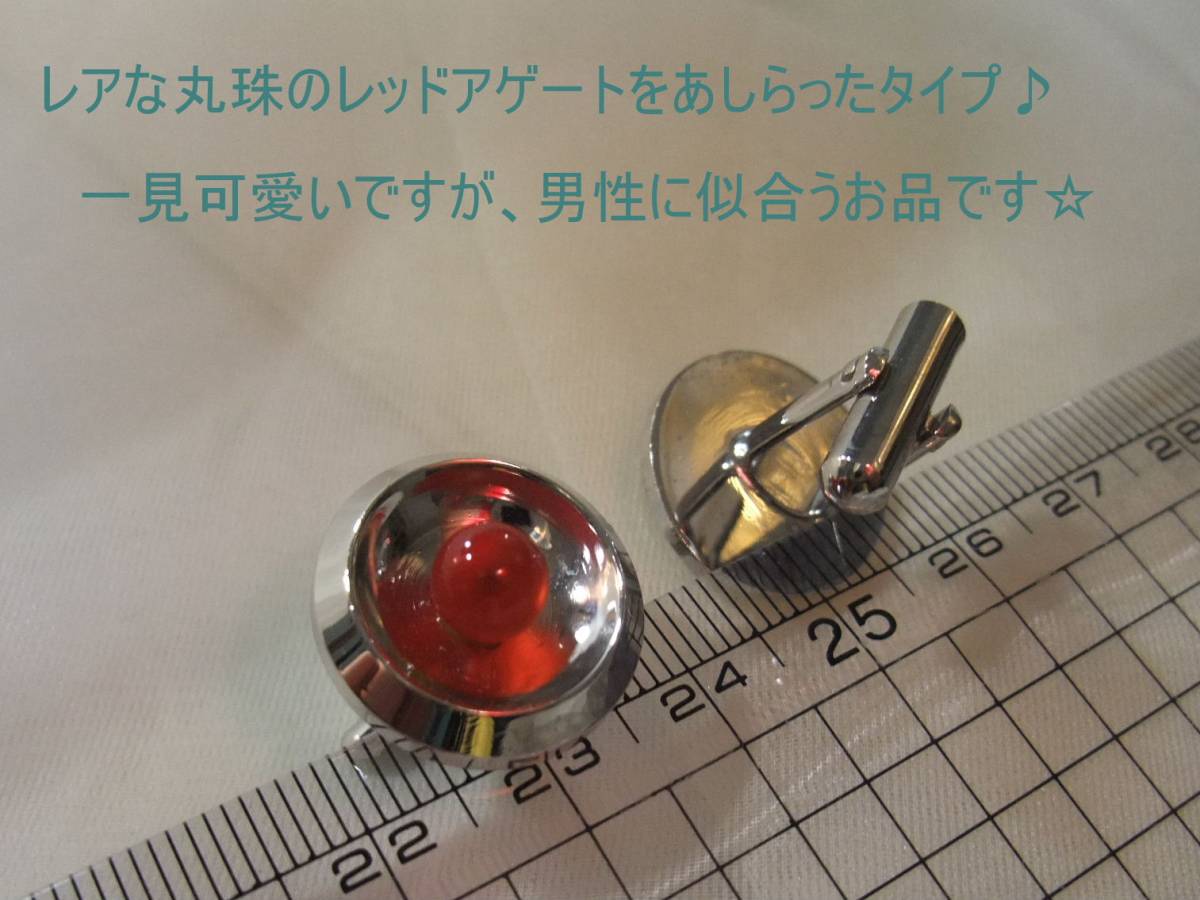 キレイ♪赤瑪瑙レッドアゲートルース入♪シンプル系レトロクラシックなビンテージカラーカフスボタンカフリンクス♪ちょい悪親父系☆96⑤