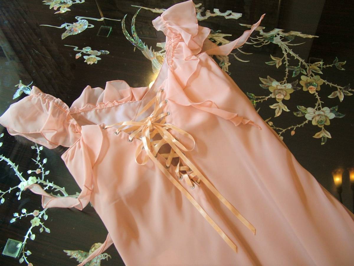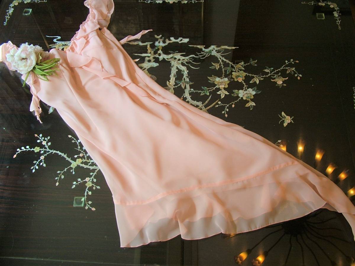 高級 ドレス ワンピース ピンク 紐 編み リボン 胸パット