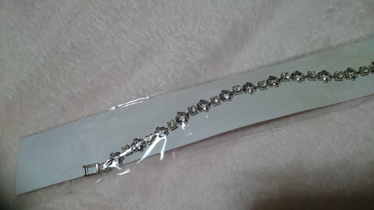 花型の鎖とラインストーンが可愛らしいブレスレットです。