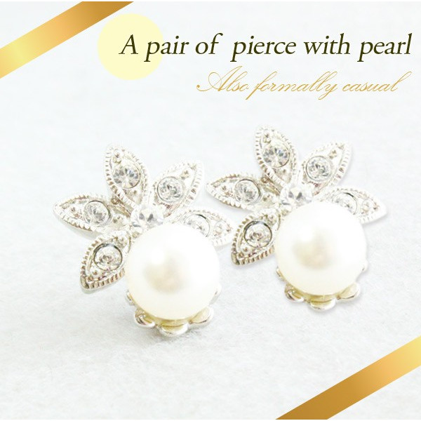 ペアピアス パール/リーフ真珠 SWAROVSKIアクセサリー/スワロフスキー 綺麗 プレゼント梱包無料 有名デザイナーがデザイン