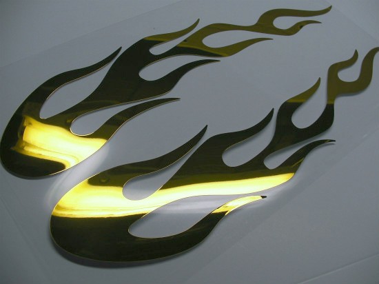 鏡面タイプのファイヤーパターンステッカーです。風雨はもちろん紫外線・海水にも強いステッカーで、屋外で5年の耐久性があります。(http://www.be-sticker.com/では他のステッカーもご覧いただけます)
