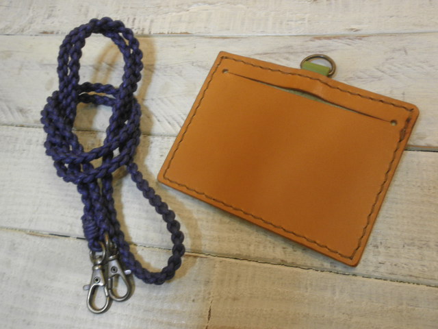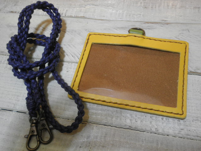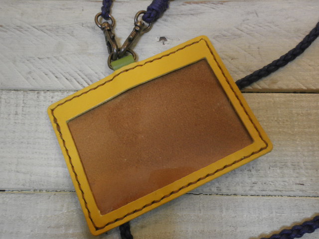 | ☆ハンドメイド☆革 手縫いIDカードホルダーネックストラップ YE |