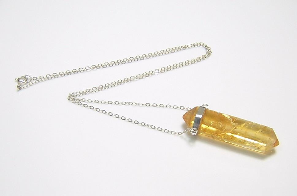 ダブルポイントの天然シトリンを使用したシルバーネックレスです。