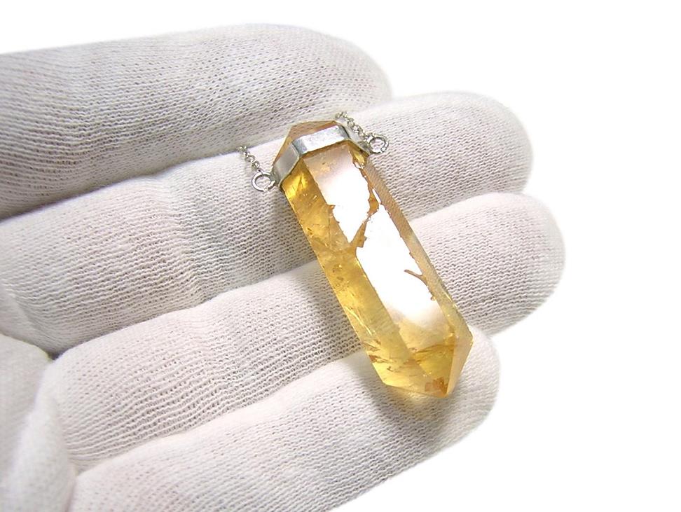 『天然シトリン』 ダブルポイント シルバーペンダント ネックレス 黄水晶