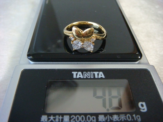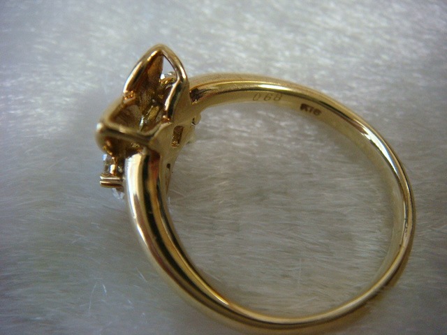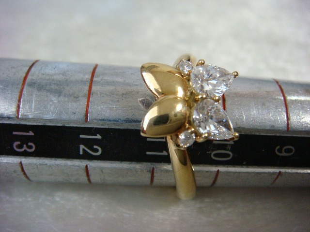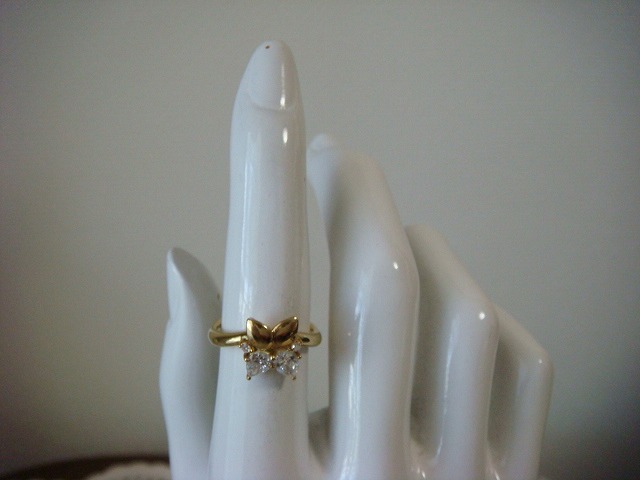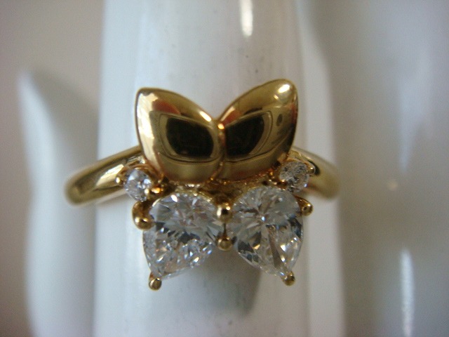 | ご覧頂きましてありがとうございます! 可愛いリボン?蝶々?大きなダイヤリングです。サイズは約10,5です。 18金です。K18の刻印入り。大きなダイヤは2個で0,68カラットです。 小さなダイヤは0,04カラットです。ダイヤは傷も無く綺麗です。重さは約4,8gです。 ダイヤモンドは永遠の愛を意味する最強の宝石です。 1年間頑張った自分へのプレゼントにいかがでしょうか? 追加画像がありますのでパソコンでご確認ください。 宝石との出会いは一期一会です。『いいな』と思ったら是非、身につけてあげて下さい。きっと宝石も喜ぶことでしょう! 宝石は決して貴女を裏切りません。身につけた貴女を守ってくれることでしょう。 いつも頑張っている自分へのご褒美にいかがでしょうか? 良いものをひとつお持ち下さい。一生物のジュエリーとなります。 画像での判断は難しいと思いますが、落札後の返品、クレーム等の無きよう、ご自分の自己責任においてご入札下さい。 モニター、パソコン、カメラによって色や感じ方が変わりますのでご注意下さい。 商品についてはコレクター、質屋さん、お客様の委託品が中心ですので、ご質問の答えが遅くなる事がありますがご了承下さい。 商品説明につきましてはすべてをお知らせできませんので、質問にてお願いいたします。 基本的にはUSED品ですので、その点を十分にご理解の上ご入札下さい。 途中で出品を取り下げる場合もありますがご了承下さい。 尚、トラブル回避の為、申し訳ございませんが、新規の方及び評価によってはこちらで入札を削除させていただく場合もございますが、ご理解下さい。 メールの確認は夜になりますのでご連絡が遅くなることもありますがご了承願います。 品物にも人と同じように『こころ』があると思います。喜んでいただけることが私にとっても品物にとっても一番良いことだと思います。 『落札したけど気に入らなかった』ということが無いように十分にお考えになってからご入札下さい。 発送は宅配便を予定しております。また発送には2,3日かかる場合もございますが、ご了承願います。 お互いに気持ちよい取引のため、落札後3日以内のご連絡、5日以内のご入金頂けない場合は申し訳ございませんが取り消しさせていただきます。 落札金額より僅かですが『子ども虐待防止 オレンジリボン運動』へ寄付をさせていただきますがご了承お願いいたします。 | |