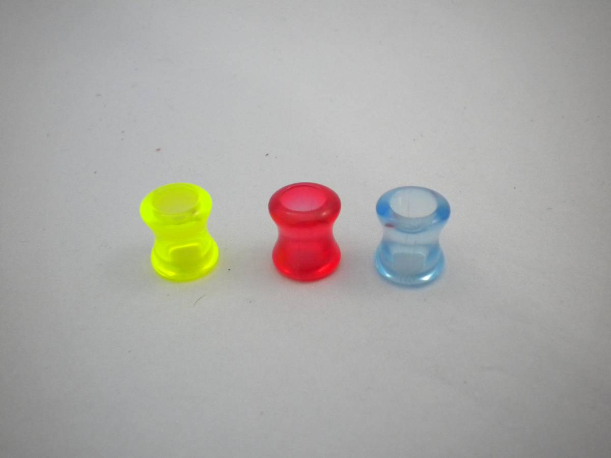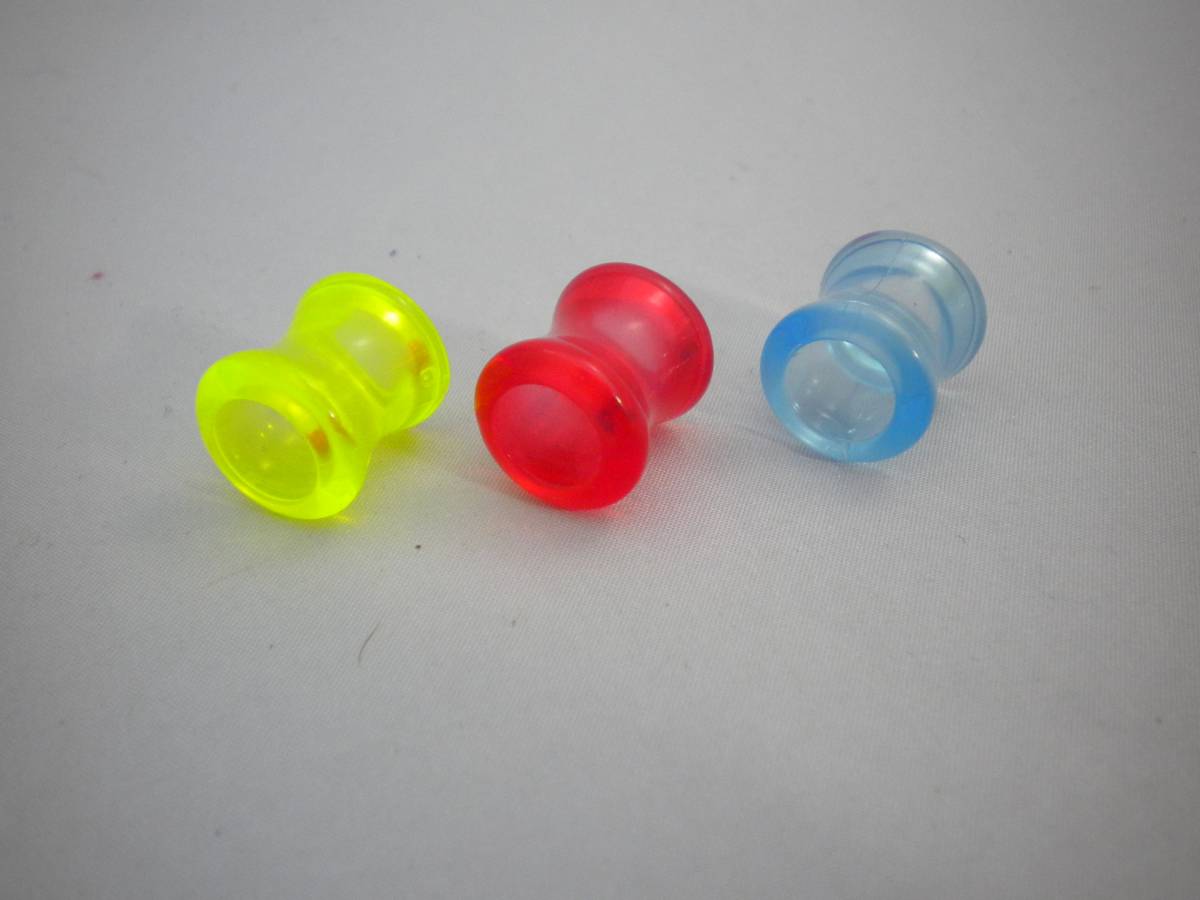 ★新品アクリルボディーピアス10mm3点セット。(ダブルフレアーとは両側がラッパ状に開いていて穴が大きく、きれいに見えます。)中央のくぼんだ場所が10mm両側の開いたところが13mmです。穴を引っ張って大きくしてから装着してください。