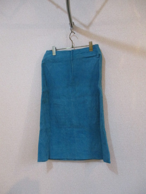 | 商品紹介 | ミントグリーンの色合いがきれいな豚革スカートです。 膝下位のミモレ丈になります。 形は若干Aラインになっています。 裾は切りっぱなしです。 《素材》 表地:豚革100% 裏地:ナイロン100% |