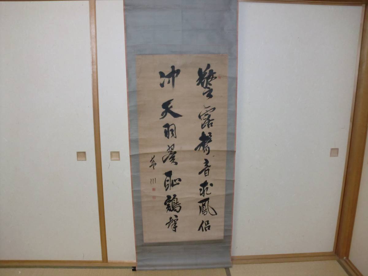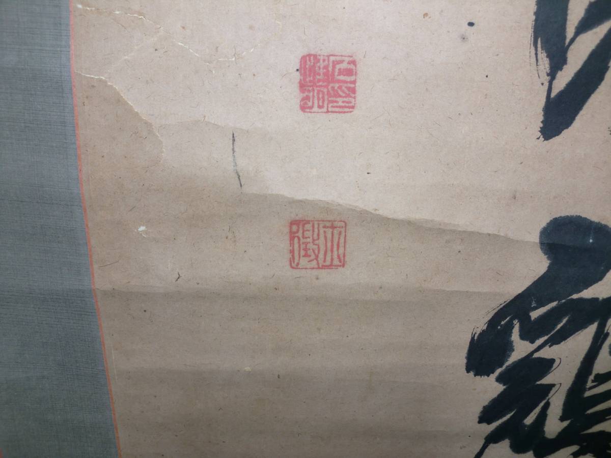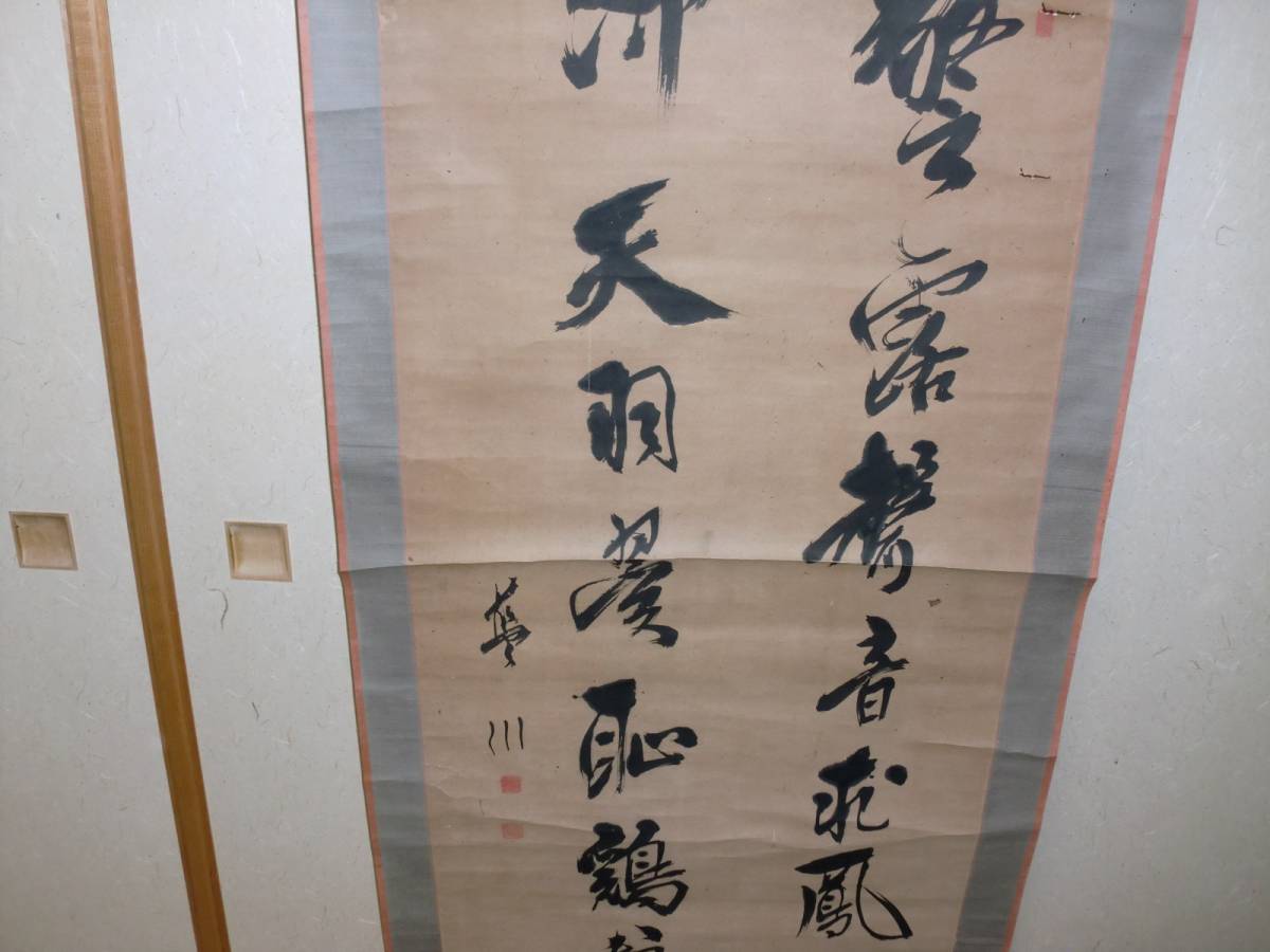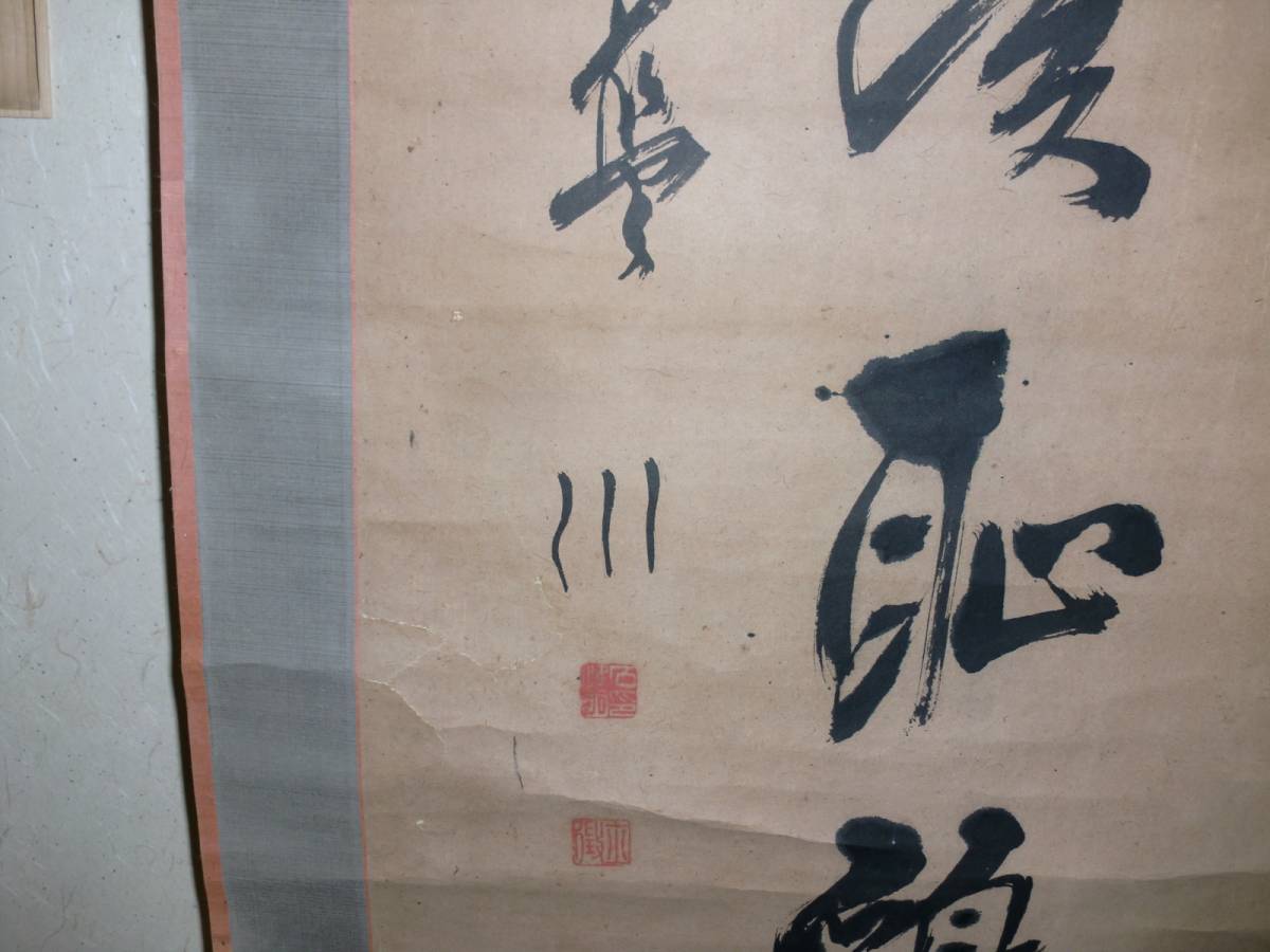 状態は、画像通りですが、非常に古ーい作品にて、本紙に汚れ、折れ、虫なめ穴等あるも雰囲気のあるアンテイークコンデイションです。