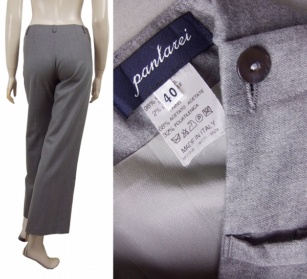 ![]() ![]() 落札後はオークション終了のお知らせメールに出品者からのメッセージが御座います。 自己紹介欄には急な休み等の記載をする場合が御座いますので一度お目通し頂きます様お願いいたします。ご一読の上オークション終了後2日以内の連絡、 落札後4日以内のご入金のお約束を守って頂ける方のご入札をお待ちしております。 小さい子供がおりますのでお急ぎのお取引を希望される方のご入札は遠慮下さいませ。 ---↓ここにブランド名記入---- ブランド名:panlarei イタリア製 ---↓ここに特徴記入---- 特徴:美脚シルエットの上質イタリア製パンツです。やや艶のある滑らかなウール&明るめのグレー系。洗練上級ストレートパンツです。 ---↓ここにサイズ記入---- サイズ : イタリア40 表示(やや細身の9号)(トルソーは9号です) 実寸(平置き採寸)ウエスト32cm、着丈96cm、ヒップ45cm、股上26cm、股下72cm、太もも幅28cm、裾幅25cm、合わせ部1つボタン、ファスナー留 ---↓ここに素材記入---- 素材 : ウール98% ポリウレタン2% 裏地 アセテート68% ナイロン32%