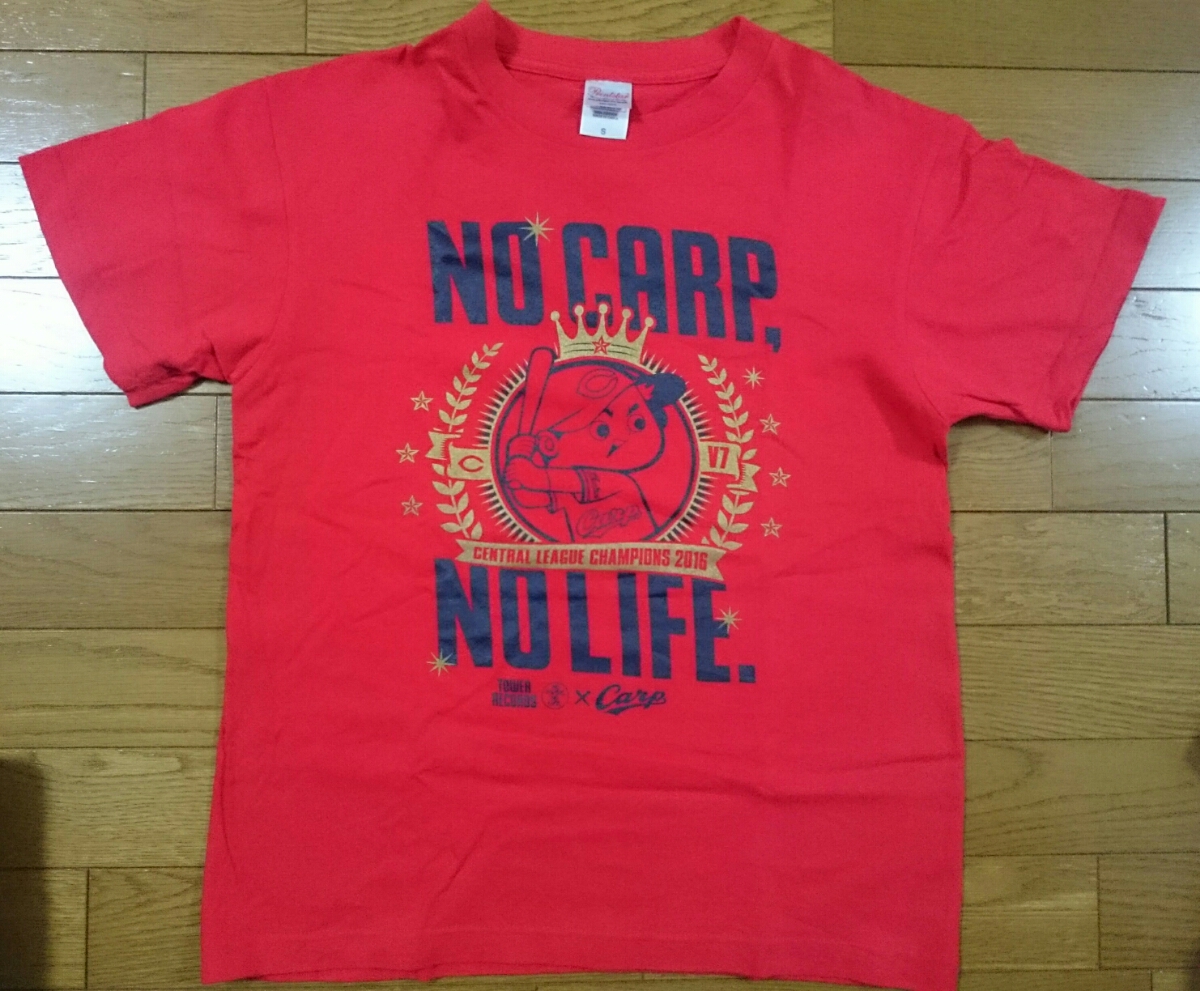 タワーレコード×広島東洋カープ■2016優勝■半袖Tシャツ■NO CARP,NO LIFE■レッド■S■3回着用、3回洗濯■ご入札の際は自己紹介欄もご覧ください■カープ坊や■V7