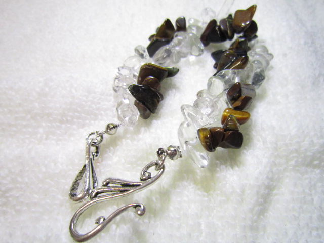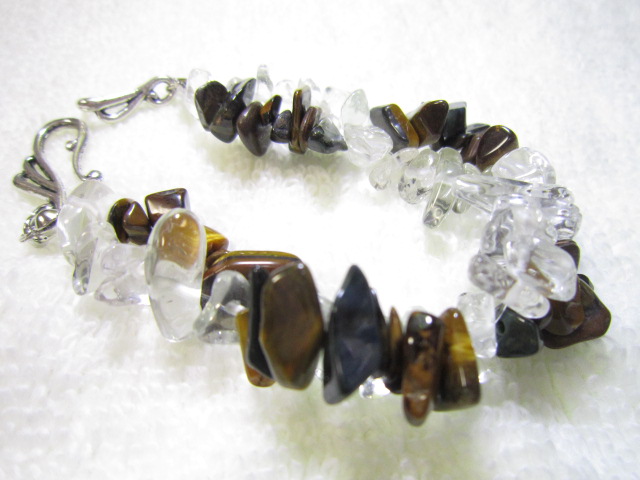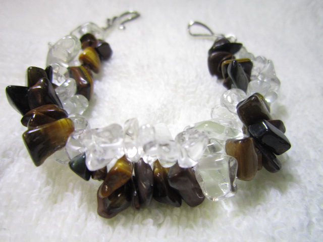 | ☆タイガーアイと水晶のさざれ石を組み合わせたお洒落なブレスレット☆ | |||