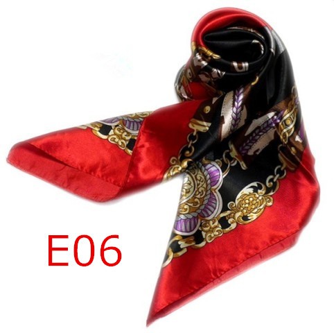 華麗な上品シルク調スカーフ 90角正方形大判レディース スカーフ 贈り物 ギフト人気な花柄 春夏秋冬、年中に使える スカーフ(E06)