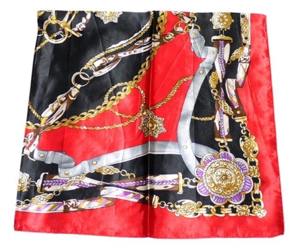 かわいいシルク調スカーフ 大判90cm正方形スカーフリボン 事務服 企業制服スカーフ。