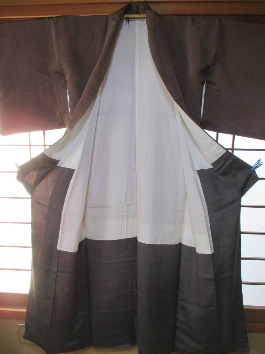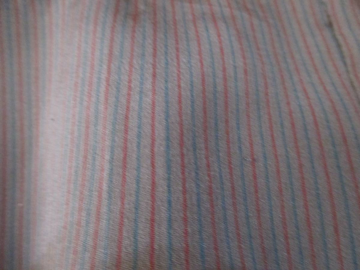 茶系の地色にエンジとエメラルドグリーンの4mm間隔の細い縞です。