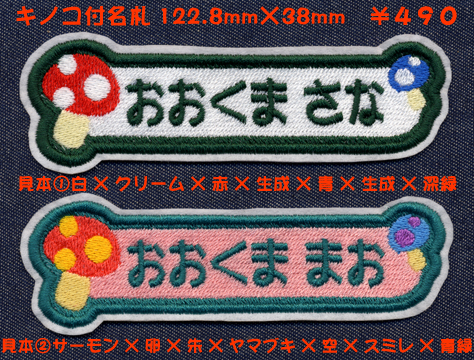 | ■ワッペン#163■キノコ付き名札#02■1枚\490■122.8㎜×38㎜■ |