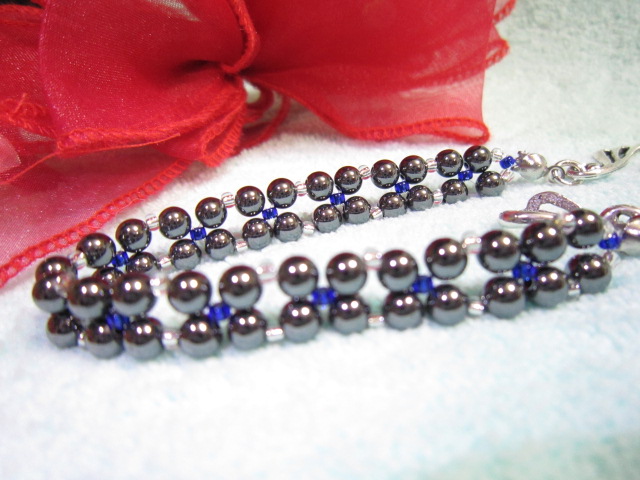 ☆すごくお洒落で綺麗なデザイン!☆ヘマタイトとビーズ玉の組み合わせブレスレット☆ | |||