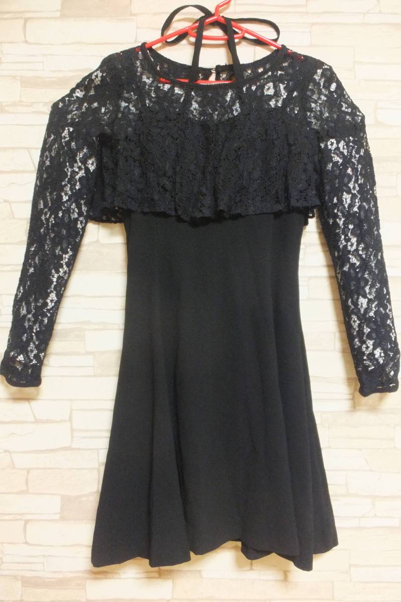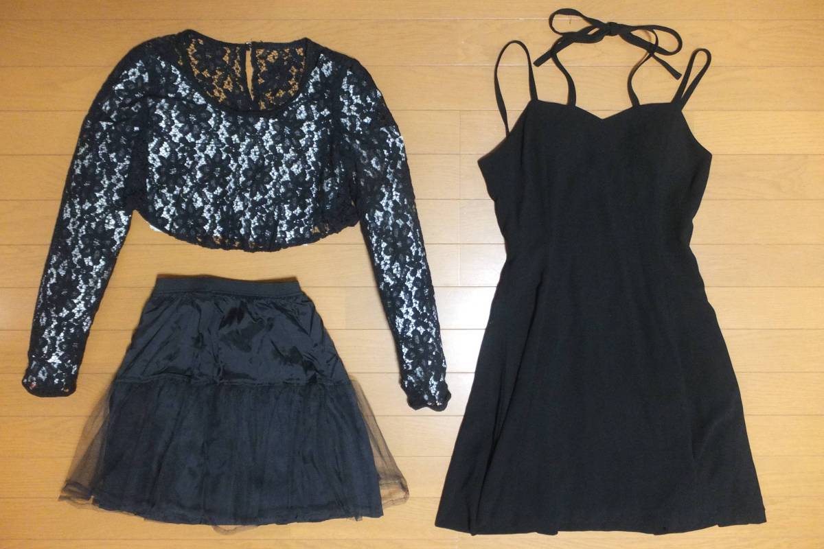 中古・美品 【日本製 フォーマル パーティードレス 9号 黒】 新品同様 《M~L相当》 3点:ワンピース/カーディガン/スカート(?) 結婚式 二次会 お見合い | |