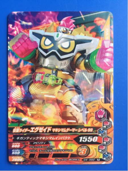 仮面ライダー、ガンバライジング・第G4弾からNo.002《仮面ライダーエグゼイド・マキシマムゲーマーレベル99》の登場です。発送は、普通郵便を利用します。(特にご希望のない場合)おとりまとめも可能ですが、送料に変動する場合がございます。また、送料のご請求は、自宅での計量を基準にご請求させていただいておりますので、実際の金額と差異が出る場合もございます。予めご了承ください。他にも多数出品中です。まとめてこの機会にいかがでしょうか?ご質問お待ちしております。