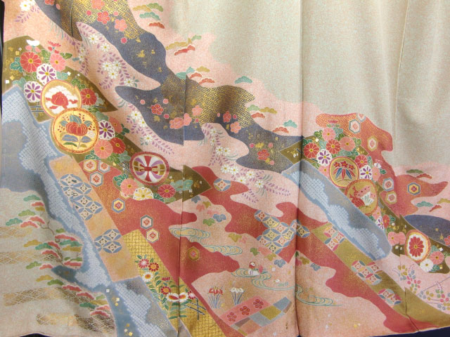 友禅の匠 伝統工芸士 松井青々 の訪問着です。古典柄を中心に、豪華に奢られた金細工の数々、