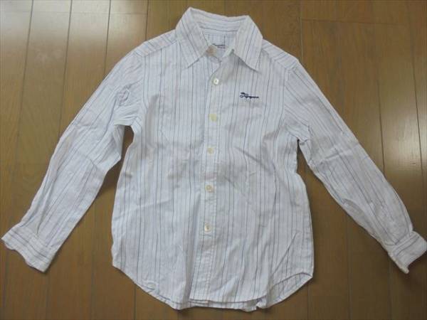 商品説明 サエグサ★白のストライプ長袖シャツ★9歳130