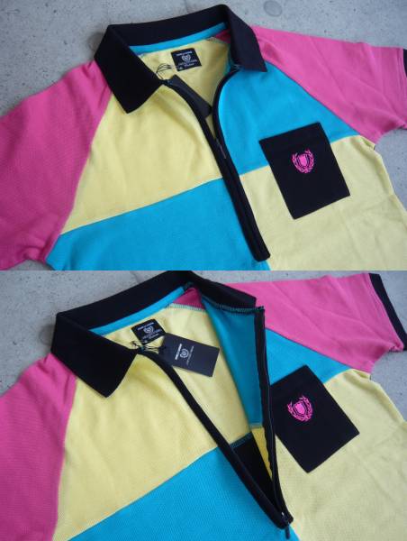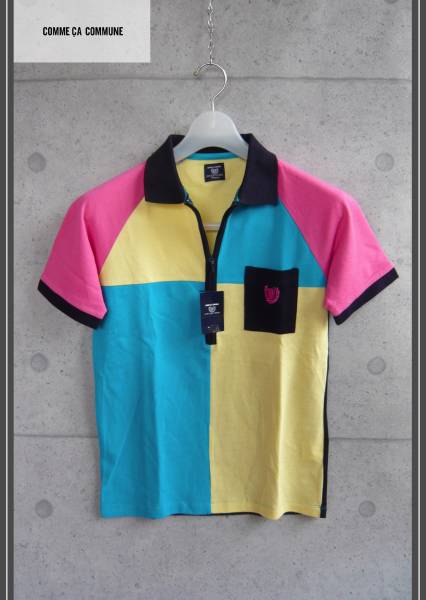 新品コムサコミューン人気トリコポロシャツM青黄桃定価5985円Z3
