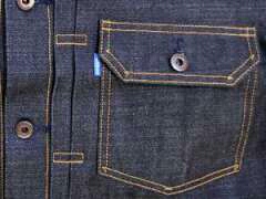 テッドマン 新品 Big.E.1stデニムジャ ケット TDDJ-1000 カラー インディゴ リーバイスの1stモデルをモチーフにし た、本格的なデニムジャケット。セル ビッチデニムを採用し、アクションプ リーツやシンチバック等、当時のディ テールを再現している。サイズ44(XL)